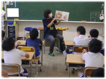 今朝は、特別支援学級、4年生、5年生の教室でボランティアの方による読み聞かせが行われました。ある学級では、本のタイトルから子どもたちの興味がぐっと高まりました。10分間という限られた時間ですが、お話の世界にゆったりと浸る心地よい時間です。