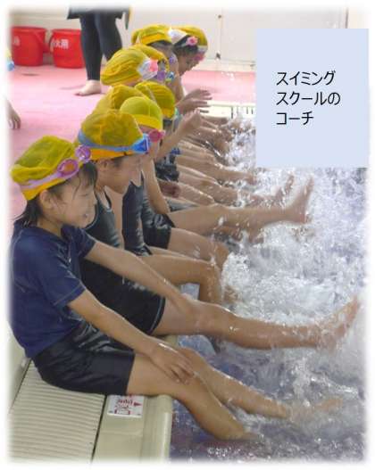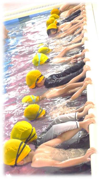 スクールでは、3つのグループに分かれて水泳学習を進めます。どのグループもスクールの先生の指示をしっかり聞き、水遊びを思いっきり楽しみました。