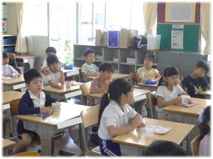 コロナ禍は感染症予防の観点から中止されていたフッ化物洗口が、今年度から再開されます。駒場小学校では、今日からスタートです。