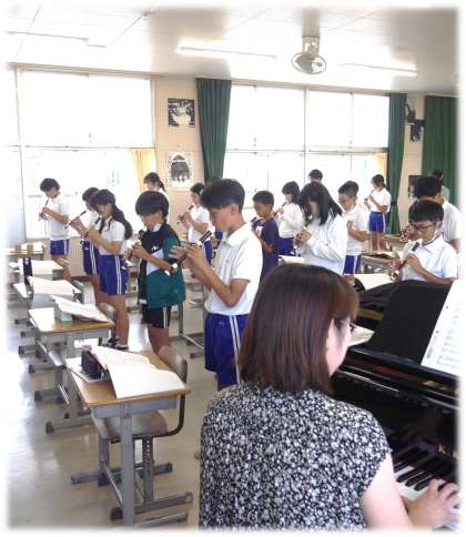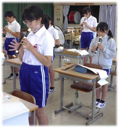 6月10日(月)6年生 音楽科の授業の様子 公開日 2024/06/10 更新日 2024/06/10 各学年から ラバースコンチェルトのリコーダー演奏に取り組んでいます。 ピアノの前奏に合わせて、柔らかな音色が音楽室を包みます。拍の長さや流れに気を付けながら演奏する6年生です。 部分的に演奏で自信がない部分を再度全体で確認し、演奏を高めるための練習を続けていました。 6年生
