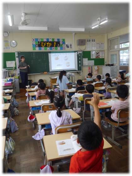 6月12日(水)1年生 国語科の授業の様子 公開日 2024/06/12 更新日 2024/06/12 各学年から 「さとうと しお」の単元です。教科書に書かれている内容をしっかりと読み、砂糖と塩の特徴を本文のことばを使って確認しています。 また、「べたべた」「さらさら」など実際に出てきたことばを自分の生活と結び付けてどのような状態かを一生懸命に説明する姿も見られました。 1年生
