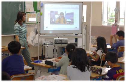国旗、イラストの特徴、映像の子どもの様子、数えるときの手の動かし方など、耳から聞く情報に加えて、いろいろな情報を生かしながら、その国を当てようと張り切る子どもたちでした。