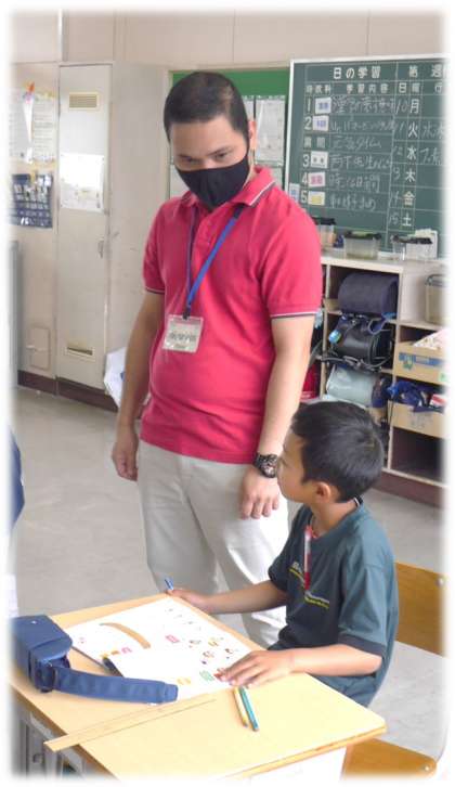 「ヒントください!」という子どもの声に、流暢なその国の「あいさつのことば」を披露する担任。思わず、拍手!