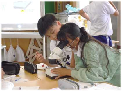 朝の会の時間に廊下を通ると、今週はこのけんび鏡を使った後かなと思う場面に何度も出くわします。きっと、登校後、朝の支度を済ませて、朝の会が始まるまでの時間に進んで観察する「観察名人」がいるに違いありません。