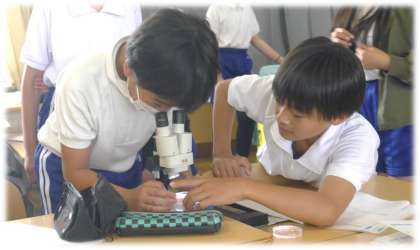 理科の授業では、とても小さいメダカのたまごをこのけんび鏡を使って観察しています。