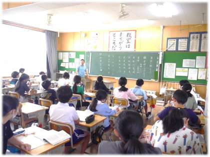 漢字ばかりで子どもたちにとっては馴染みのない形態ですが、「詩」であること、そこに詠まれた思いが現代の私たちにも「それ、あるよね」と共感できるものがあることを味わえるかもしれません。教室をのぞいたときには、漢文への関心をもてるようにと、担任が自分の名前を当て字で漢字表記して、子どもたちも自分の名前で「漢文」化を楽しんでいました。