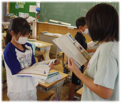 一通り練習したら、次はペアでの交互読みです。現代語訳を心情たっぷりに読み上げる姿も見られ、ほほえましく感じました。