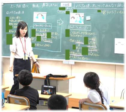 こちらは、3年生の道徳科の授業の様子です。メディアの使い方について、学級のみんなと考えました。