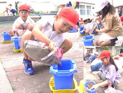 1年生のアサガオ、2年生の野菜とはまた違う大豆の育て方に、3年生はわくわくです。これから、登校してくると自分の鉢を確認する3年生の姿が見られそうです。