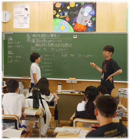 6月20日(木)6年生 算数科の授業の様子 公開日 2024/06/20 更新日 2024/06/20 各学年から 落ちや重なりがないように、組み合わせを調べる方法を話し合っています。 調べ方はさまざまあり、どんどん自分の考えを伝える6年生。自分と同じ考え方でも、自分の言葉でつなげていこうとする姿も見られ、すてきです。 何種類かの調べ方が発表され、そのどれもが「同じ答え」を導き出していることに「お〜」「やっぱりね」と反応する6年生です。 6年生