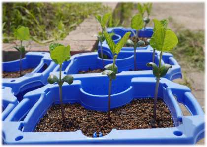 大豆を蒔いて1週間。3粒の大豆から発芽して、順調にすくすく成長中です。