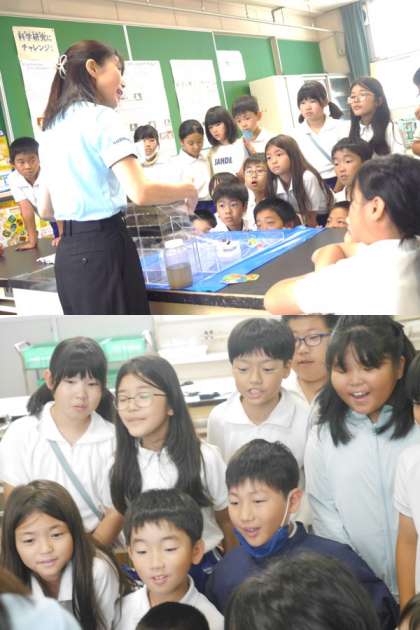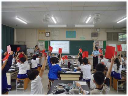 環境について学んでいる総合的な学習の時間と理科の授業を関連させて、今日は水育の出前講座を行いました。