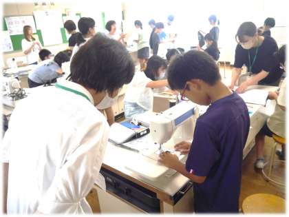 ミシンボランティアの方のあたたかいサポートで、順調に製作も進んでいます。こうした授業サポートのボランティアの方々のお力添えが本当にありがたいです。子どもたちも製作中の困りごとをすぐに聞けて解決できるため、心強く感じていることでしょう。