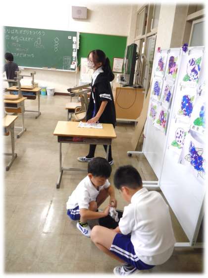 7月2日(火)5・6・7・8組 清掃活動の様子 公開日 2024/07/02 更新日 2024/07/02 各学年から 6年生と一緒に、自分の分担の場所をきれいにするために前向きに取り組んでいます。 互いに声をかけ合いながら清掃を行う姿がすてきです。 5678組