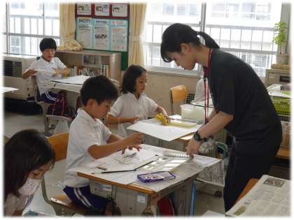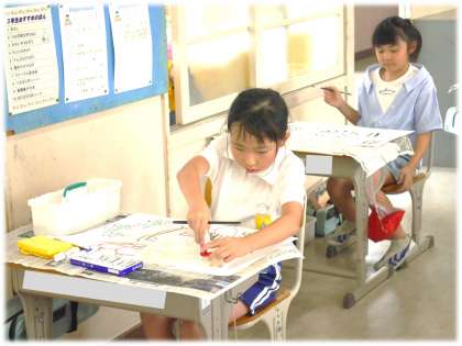7月9日(火)3年生 図画工作科の授業の様子 公開日 2024/07/09 更新日 2024/07/09 各学年から 学習用タブレットで作成した下絵をもとに、四つ切り画用紙に作画し、色付けを行っています。自分の好きな農作物をのびやかに表現している3年生です。 3年生
