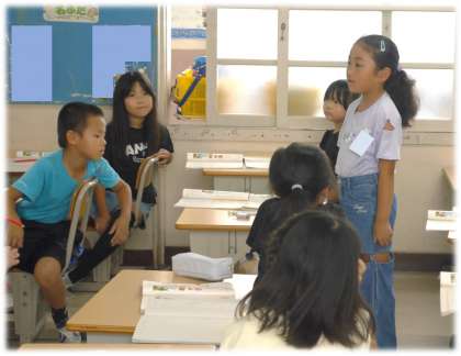 前時でメモした心に残ったできごとを文章として組み立てていきます。まとめた文章はみんなの前で発表することを知ると、俄然やる気になる2年生です。