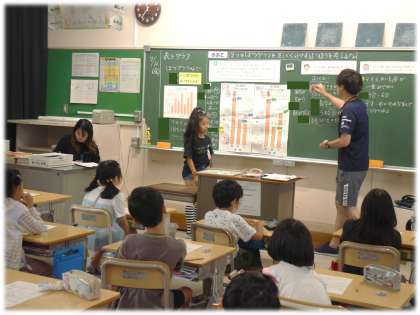 何をどのような視点で比べるかで、ぼうグラフの見方や気を付けるべきことが違ってくるのではないかと気づき始めた3年生。授業終了のチャイムが鳴ると、「次の時間もこの続きを考えたい」という声が上がるほどでした。