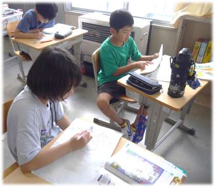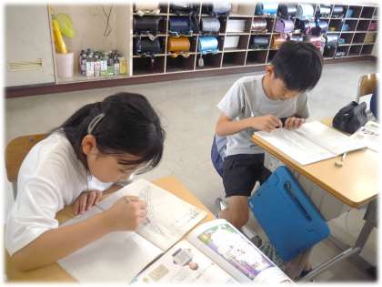 9月2日(月)3年生の様子 公開日 2024/09/02 更新日 2024/09/02 各学年から 算数の授業です。一人一人なにやら真剣にノートに書き込んでいます。ノートをのぞいてみると、なんと迷路づくりに集中しています! 入口や出口はもちろんのこと、全体像も意識しながら、なかなか本格的な迷路がどんどん仕上がっていきます。最後は、お隣同士で、互いの迷路にチャレンジ!そちらも真剣そのものでした。 3年生