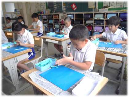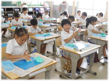 9月4日(水)2年生 図画工作科の授業の様子 公開日 2024/09/04 更新日 2024/09/04 各学年から 夏休みの思い出を形に表そうと、粘土制作に取り組んでいます。 粘土を触るも、つい表情がにこにこ顔になる2年生。夏休みの楽しい思い出がよみがえり、楽しくなっている様子が伝わってきます。さあ、どんな作品に仕上がったかな。 2年生
