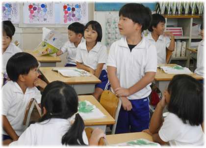 みんなで元気よく音読した後は、この後の登場人物になりきって、気持ちを伝え合います。