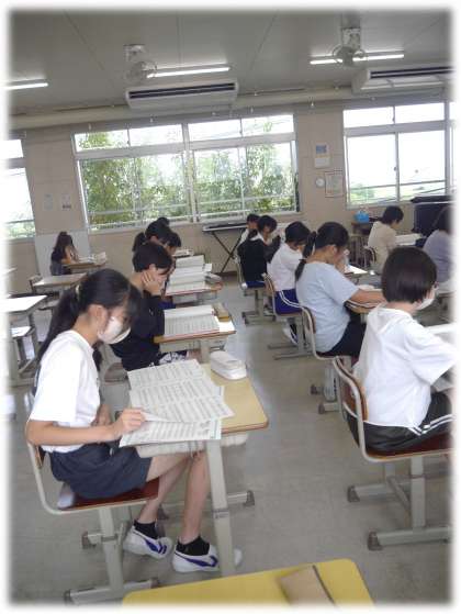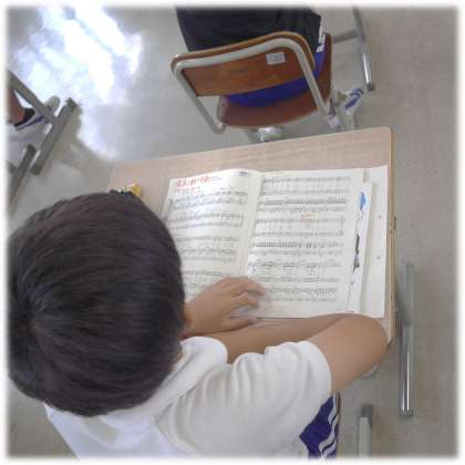 よく見ると、自分の楽譜に大切なことを書き込んでいる6年生もいました。教科担任の歌い方のアドバイスを自分の力にしようと、自分の楽譜づくりをしている姿に感心しました。