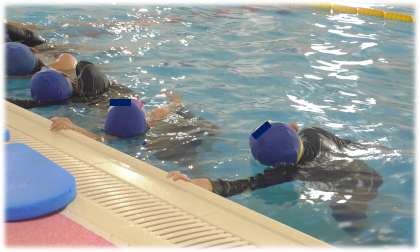 スイミングスクールに到着すると、てきぱきと準備をし、限られた時間を有効に使おうと動く5年生。コーチの方の説明もしっかり聞きながら、自分の泳力を磨く練習に取り組みました。