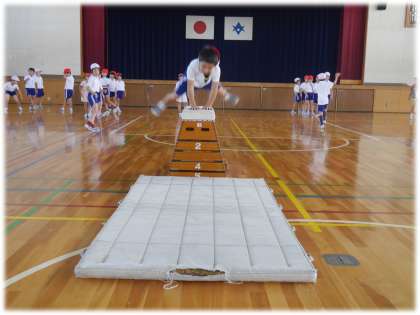 9月12日(木)2年生 体育科の授業の様子 公開日 2024/09/12 更新日 2024/09/12 各学年から 跳び箱の練習を元気いっぱいに取り組んでいました。 「さっきより、手をつく位置がよくなったね」 「踏み切りのタイミングがよくなっているよ」 担任のアドバイスを聞き、もう1回、もう1回と練習を重ねる2年生。気持ちよく跳べたときに、本人も担任も思わずうれしくなって、ハイタッチする場面もありました。 2年生