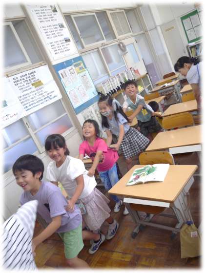 ナレーションの子の音読に合わせて、かぶを引っ張る様子を動作化したり、やっと抜けた際の登場人物たちの気持ちをセリフで表現したりしていきます。グループごとに、何度も何度も練習する姿がすてきでした。