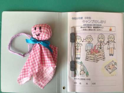 ふれあいタイムに、5、6、7、8組の子どもたちが「来週のキャンプ、気を付けて行ってきてください。お守りを作ったので、ぜひ、カバンにつけてください。」と、すてきなお守りをを届けてくれました。にこにこ顔のてるてる坊主に、気持ちも晴れやかになりました。守られていると思うと、安心感で心が満たされます。