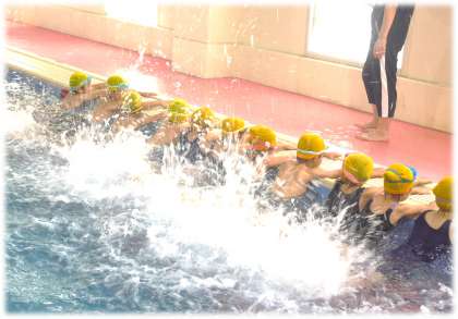 今日を入れて残り2回となる水泳学習ですが、コーチの話をしっかり聞きながら、楽しんで水に親しむ姿がたくさん見られました。水の中に潜ること、鼻から息を出すこと、け伸びをして水の中を進むこと、ビート版を使ってばた足に挑戦すること。それぞれのグループで時間いっぱいまで一生懸命に取り組むことができました。