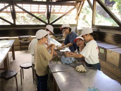 作業が進むにつれて、炊事場はヨモギの爽やかな香りに包まれ、暑さを和らげてくれているかのようでした。
