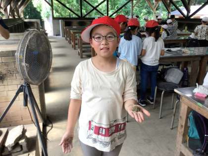 親指大ほどのもぐさが完成して、みんなの表情も誇らし気です。