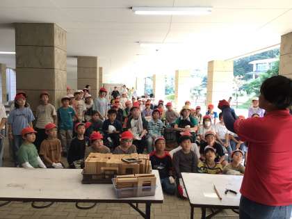 9月19日(木)5年生 楽楽駒キャン35 公開日 2024/09/19 更新日 2024/09/19 学校行事 所員の方の清掃点検もクリアして、いよいよクラフトの時間です。 野外学習の思い出を刻む写真立てづくりに取り組みます。まずは、所員の方から手順と安全に制作するための注意点の説明がありました。バーナーであぶり、表面を磨くと、木目の模様がはっきりと浮かび上がり、子どもたちの目が輝きます。 5年生 5678組 行事