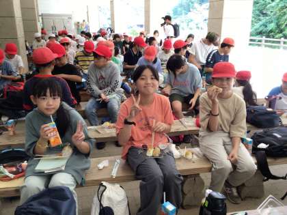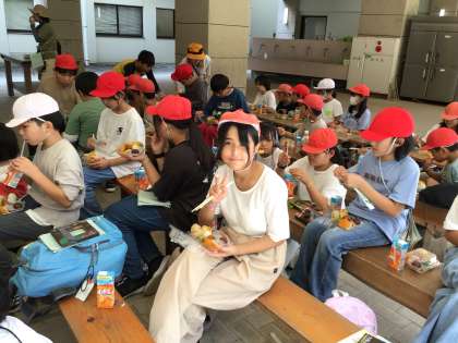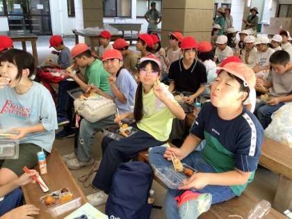 六所での最後の食事です。おにぎり弁当をおいしそうにほおばります。