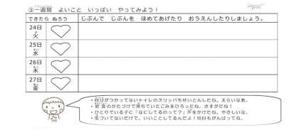いつもなら「当たり前」と済ませてしまうことも、今週は、そのことを自分から行動に移せている「すてきな自分」を自分でしっかり受け止めて、自分のことをたくさんほめていけるとすてきですね。その思いが、その行動が、すでに周りのみんなも幸せにしているから。