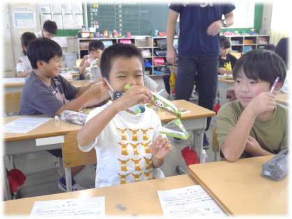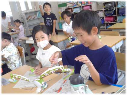 1円玉を増やしたり、減らしたりしながら、天びんのつり合いを興味をもって探っている3年生です。今まで、これほどまでに1円玉に着目した経験もなかっただろうなあと、子どもたちの生き生きとするまなざしが印象的な1時間でした。