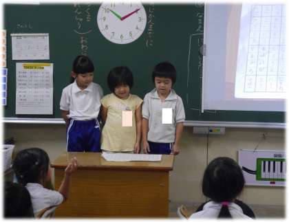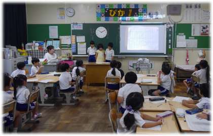 班ごとの発表を聞きながら、さらにすてきな表現を見つけ、そのよさを互いに交流する1年生です。