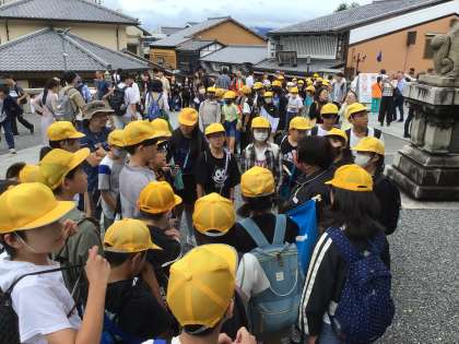 10月8日(火)6年生 修学旅行「最高の思い出2日間スペシャル」5 公開日 2024/10/08 更新日 2024/10/08 学校行事 現在、6年生はタクシーを利用した班別活動中です。 ここまでの様子を紹介します。 2回目のトイレ休憩を行った大津SAから京都までのバス中は、バスガイドの方から京都の歴史についての話を聞きながら、順調に最初の目的地である清水寺に到着しました。途中、渋滞もなくスムーズな道程でした。晴れとはいきませんが、雨も降っておらず、少し歩くと汗ばむ気候です。 6年生 行事