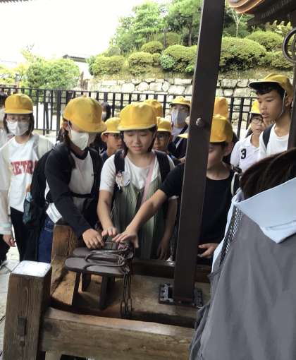10月8日(火)6年生 修学旅行「最高の思い出2日間スペシャル」9 公開日 2024/10/08 更新日 2024/10/08 学校行事 「先生、持ってみて」 「これは、無理だ。みんなで持つぞ」 「重すぎる!」 6年生 行事