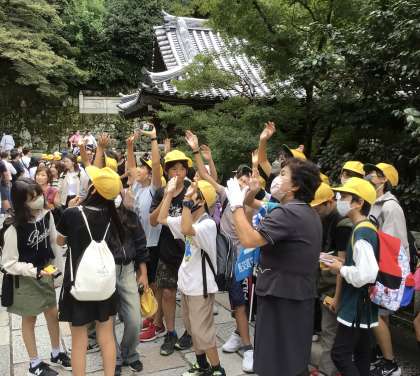10月8日(火)6年生 修学旅行「最高の思い出2日間スペシャル」14 公開日 2024/10/08 更新日 2024/10/08 学校行事 先ほどいた清水の舞台を下から見上げます。手を振り返してくれる観光客の方に6年生は大喜びです。 6年生 行事