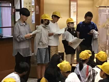奈良公園に入ると、車窓からも鹿の姿が確認でき、6年生は大喜びでした。今晩宿泊する宿は、若草山の麓にある老舗の旅館むさし野さんです。旅館の方の温かい出迎えに、6年生も元気のよいあいさつで応えます。
