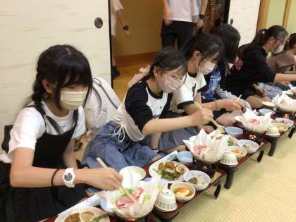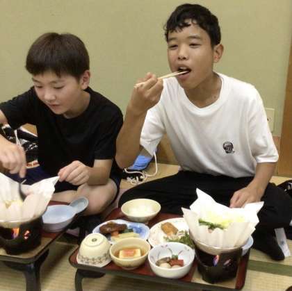 10月8日(火)6年生 修学旅行「最高の思い出2日間スペシャル」22 公開日 2024/10/08 更新日 2024/10/08 学校行事 大広間で学年の仲間と一緒に食べる食事は、それだけでもご馳走です。みんなとわいわい語らいながら、おいしい食事に舌鼓。箸がどんどん進みます。 6年生 行事