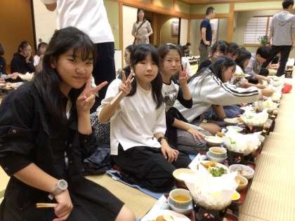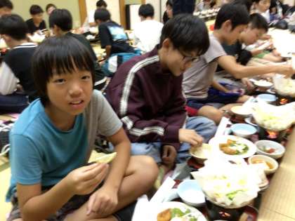 10月8日(火)6年生 修学旅行「最高の思い出2日間スペシャル」23 公開日 2024/10/08 更新日 2024/10/08 学校行事 笑顔満開の食事時間です。 「おいしい?」 「酸っぱいです」 「そうだね、それはレモンだからね」 和気あいあいとした時間になりました。 6年生 行事