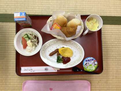 10月9日(水)6年生 修学旅行「最高の思い出2日間スペシャル」29 公開日 2024/10/09 更新日 2024/10/09 学校行事 現在バスは、ほぼ予定どおり奈良公園を出発し、一路最後の見学地である法隆寺へ向かっています。天気にも恵まれ、歩き疲れた6年生もいますが、みんな元気です。 朝の様子から紹介します。 午前6時に起床後、朝の支度や部屋の片付けを終えて、朝食までの時間、部屋の仲間とくつろぐ6年生です。今朝の朝食メニューは、パン食でした。 6年生 行事