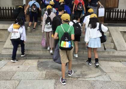 10月9日(水)6年生 修学旅行「最高の思い出2日間スペシャル」42 公開日 2024/10/09 更新日 2024/10/09 学校行事 法隆寺では、たい石を踏んで幸せを願いながら見学開始です。 6年生 行事