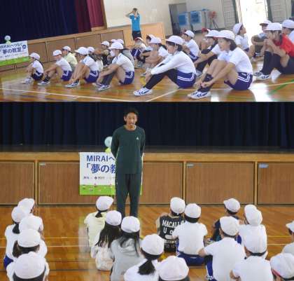 学級ごとに2時間ずつ、夢の教室を開催しました。今回、駒場っ子のためにビーチサッカー日本代表の小牧正幸氏となでしこジャパンの小林弥生氏の2名を夢先生として招きました。