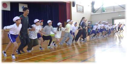 じゃんけんゲームや手つなぎだるまさんが転んだなど、和気あいあいと夢先生と一緒に活動しながら、仲間と一緒に取り組むことの楽しさ、心地よさを体感した5年生です。夢先生の「プロの技」を見せていただく場面もあり、その迫力あるプレーに5年生は大興奮でした。