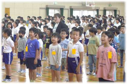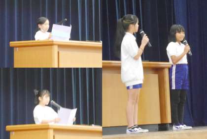 2・4・6年生の代表者による作文発表では、それぞれに前期の楽しかったこと、がんばったことなどをふまえて、後期に取り組みたいことを目標として掲げてくれました。