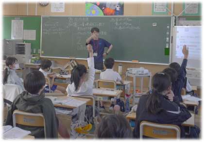 10月15日(火)6年生 算数科の授業の様子 公開日 2024/10/15 更新日 2024/10/15 各学年から 比例の学習を進めています。問題文をよく読んで、「〇:△」の〇と△の順番が逆になってはいけない理由までしっかり考えながら、意見を伝え合っていました。 比の考え方は、意外と日常生活の中でたくさん隠れていますね。そのつながりを見つけてみることもまた、おもしろいです。 6年生
