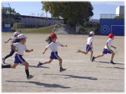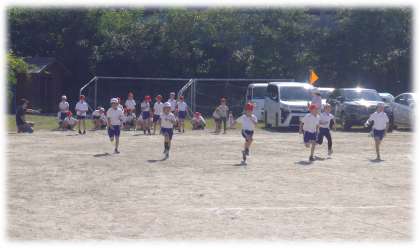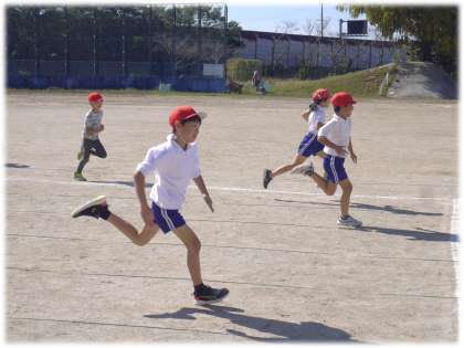 力いっぱい走る2年生の元気な姿が見られました。運動会に向けて、かけっこの練習が始まっています。